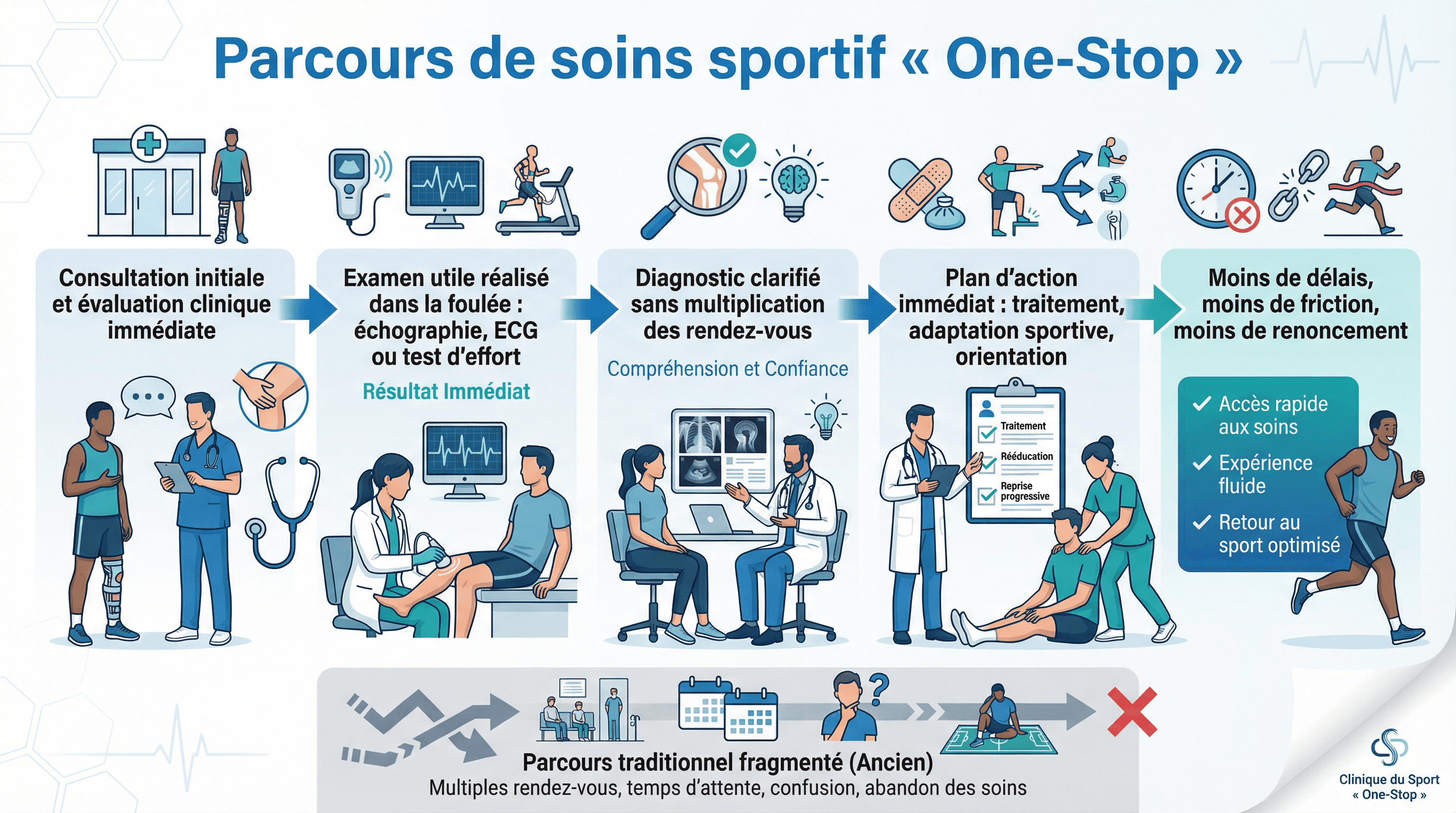 C’est exactement là que des acteurs comme SPEEDOCTOR peuvent jouer un rôle structurant : non pas en “rajoutant une couche” au système, mais en recomposant le parcours. Le rendre lisible. Le rendre rapide. Le rendre cohérent avec la vraie vie des sportifs. L’enjeu n’est pas seulement d’aller plus vite. L’enjeu, c’est d’éviter que l’attente fabrique de la chronicité.